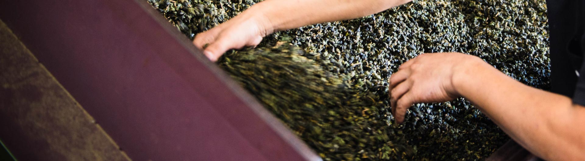 揉捻後的茶葉會結塊,需要經過攪拌機攪散團塊,以利茶葉顆粒均勻,形狀緊結美觀,發散一部分的水氣與熱氣,讓茶葉不致變紅。